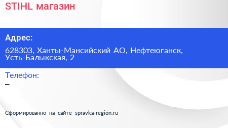 STIHL, магазин по адресу 628303, Ханты-Мансийский АО, Нефтеюганск, Усть-Балыкская, 2 в дальнейшем Организация, размещена в следующих категориях: