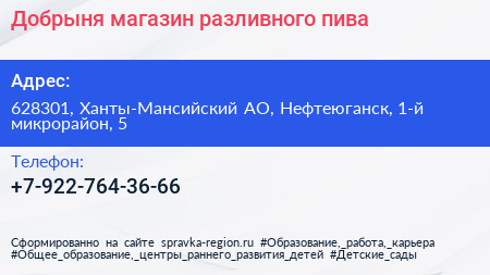 Добрыня, магазин разливного пива по адресу 628301, Ханты-Мансийский АО, Нефтеюганск, 1-й микрорайон, 5 в дальнейшем Организация, размещена в следующих категориях: