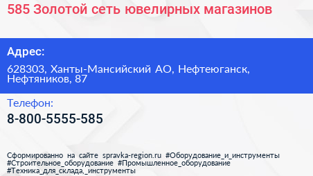 585 Золотой, сеть ювелирных магазинов по адресу 628303, Ханты-Мансийский АО, Нефтеюганск, Нефтяников, 87 в дальнейшем Организация, размещена в следующих категориях: