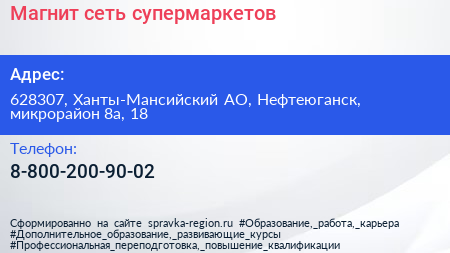 Магнит, сеть супермаркетов по адресу 628307, Ханты-Мансийский АО, Нефтеюганск, микрорайон 8а, 18 в дальнейшем Организация, размещена в следующих категориях: