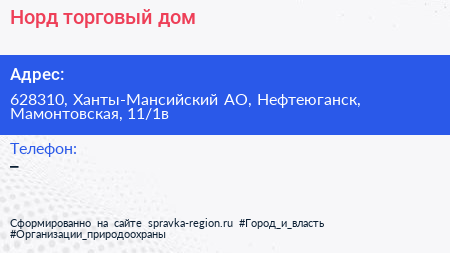 Норд, торговый дом по адресу 628310, Ханты-Мансийский АО, Нефтеюганск, Мамонтовская, 11/1в в дальнейшем Организация, размещена в следующих категориях: