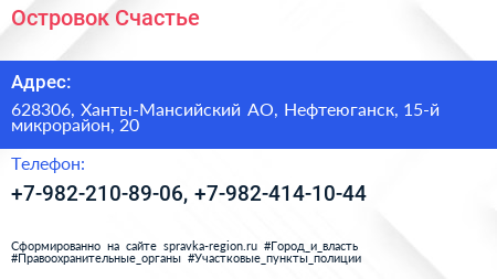 Островок Счастье по адресу 628306, Ханты-Мансийский АО, Нефтеюганск, 15-й микрорайон, 20 в дальнейшем Организация, размещена в следующих категориях: