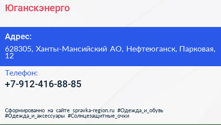Юганскэнерго по адресу 628305, Ханты-Мансийский АО, Нефтеюганск, Парковая, 12 в дальнейшем Организация, размещена в следующих категориях: