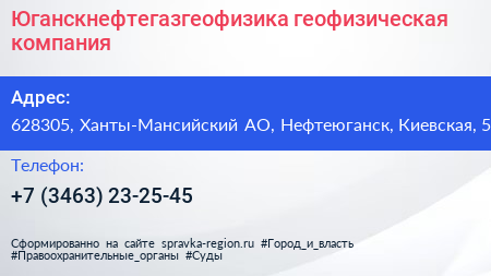 Юганскнефтегазгеофизика, геофизическая компания по адресу 628305, Ханты-Мансийский АО, Нефтеюганск, Киевская, 5 в дальнейшем Организация, размещена в следующих категориях: