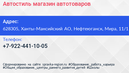 Автостиль, магазин автотоваров по адресу 628305, Ханты-Мансийский АО, Нефтеюганск, Мира, 11/1 в дальнейшем Организация, размещена в следующих категориях: