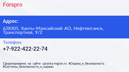 Forspro по адресу 628305, Ханты-Мансийский АО, Нефтеюганск, Транспортная, 9/2 в дальнейшем Организация, размещена в следующих категориях: