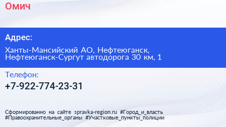 Омич по адресу Ханты-Мансийский АО, Нефтеюганск, Нефтеюганск-Сургут автодорога 30 км, 1 в дальнейшем Организация, размещена в следующих категориях:
