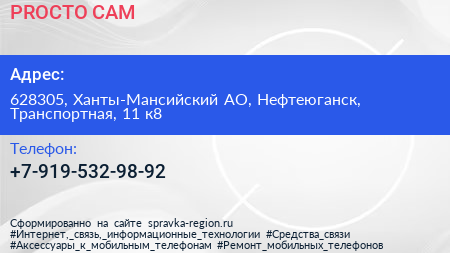 PROСТО-САМ по адресу 628305, Ханты-Мансийский АО, Нефтеюганск, Транспортная, 11 к8 в дальнейшем Организация, размещена в следующих категориях: