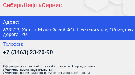 СибирьНефтьСервис по адресу 628303, Ханты-Мансийский АО, Нефтеюганск, Объездная дорога, 20 в дальнейшем Организация, размещена в следующих категориях: