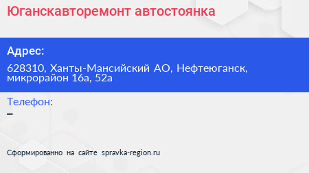 Юганскавторемонт, автостоянка по адресу 628310, Ханты-Мансийский АО, Нефтеюганск, микрорайон 16а, 52а в дальнейшем Организация, размещена в следующих категориях: