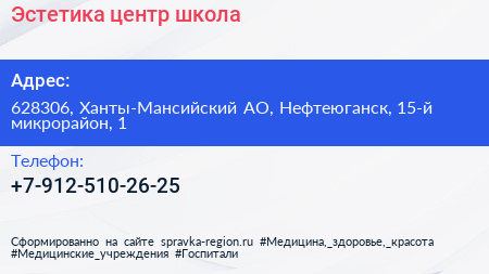 Эстетика-центр, школа по адресу 628306, Ханты-Мансийский АО, Нефтеюганск, 15-й микрорайон, 1 в дальнейшем Организация, размещена в следующих категориях: