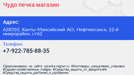Чудо-печка, магазин по адресу 628310, Ханты-Мансийский АО, Нефтеюганск, 12-й микрорайон, ст62 в дальнейшем Организация, размещена в следующих категориях: