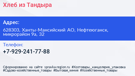 Хлеб из Тандыра по адресу 628303, Ханты-Мансийский АО, Нефтеюганск, микрорайон 9а, 32 в дальнейшем Организация, размещена в следующих категориях: