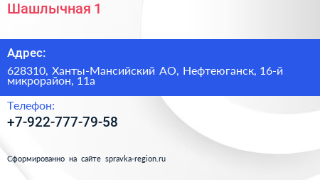 Шашлычная №1 по адресу 628310, Ханты-Мансийский АО, Нефтеюганск, 16-й микрорайон, 11а в дальнейшем Организация, размещена в следующих категориях: