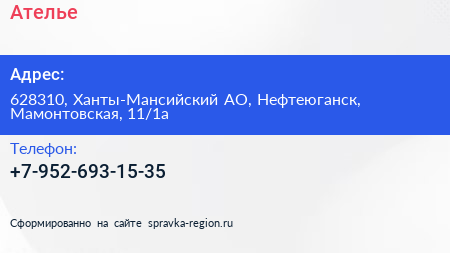 Ателье по адресу 628310, Ханты-Мансийский АО, Нефтеюганск, Мамонтовская, 11/1а в дальнейшем Организация, размещена в следующих категориях: