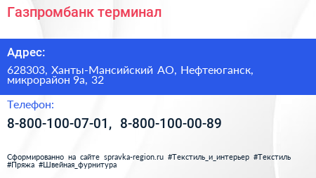Газпромбанк, терминал по адресу 628303, Ханты-Мансийский АО, Нефтеюганск, микрорайон 9а, 32 в дальнейшем Организация, размещена в следующих категориях: