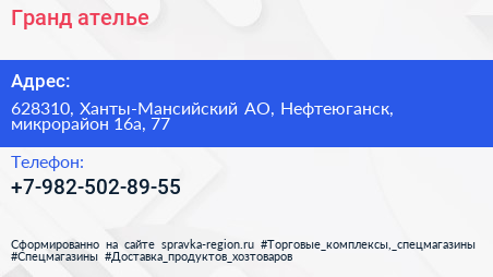 Гранд, ателье по адресу 628310, Ханты-Мансийский АО, Нефтеюганск, микрорайон 16а, 77 в дальнейшем Организация, размещена в следующих категориях: