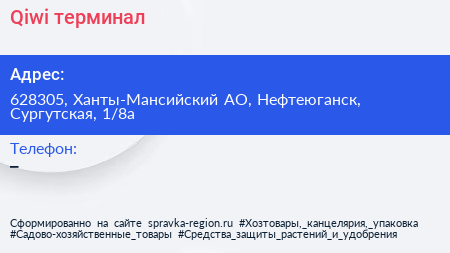 Qiwi, терминал по адресу 628305, Ханты-Мансийский АО, Нефтеюганск, Сургутская, 1/8а в дальнейшем Организация, размещена в следующих категориях: