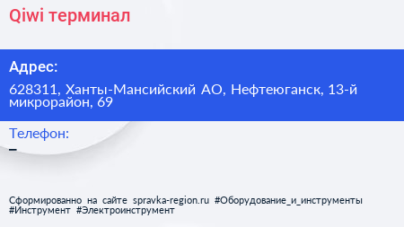 Qiwi, терминал по адресу 628311, Ханты-Мансийский АО, Нефтеюганск, 13-й микрорайон, 69 в дальнейшем Организация, размещена в следующих категориях: