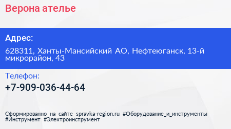 Верона, ателье по адресу 628311, Ханты-Мансийский АО, Нефтеюганск, 13-й микрорайон, 43 в дальнейшем Организация, размещена в следующих категориях: