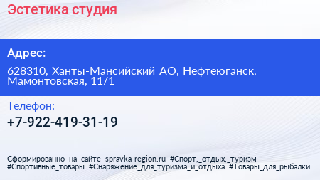 Эстетика, студия по адресу 628310, Ханты-Мансийский АО, Нефтеюганск, Мамонтовская, 11/1 в дальнейшем Организация, размещена в следующих категориях: