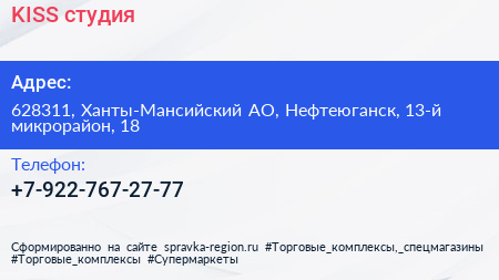KISS, студия по адресу 628311, Ханты-Мансийский АО, Нефтеюганск, 13-й микрорайон, 18 в дальнейшем Организация, размещена в следующих категориях: