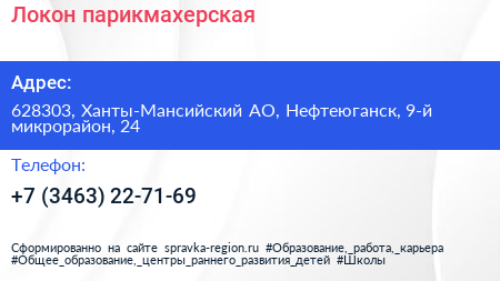 Локон, парикмахерская по адресу 628303, Ханты-Мансийский АО, Нефтеюганск, 9-й микрорайон, 24 в дальнейшем Организация, размещена в следующих категориях: