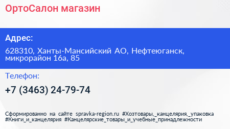 ОртоСалон, магазин по адресу 628310, Ханты-Мансийский АО, Нефтеюганск, микрорайон 16а, 85 в дальнейшем Организация, размещена в следующих категориях: