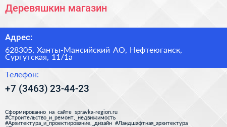 Деревяшкин, магазин по адресу 628305, Ханты-Мансийский АО, Нефтеюганск, Сургутская, 11/1а в дальнейшем Организация, размещена в следующих категориях: