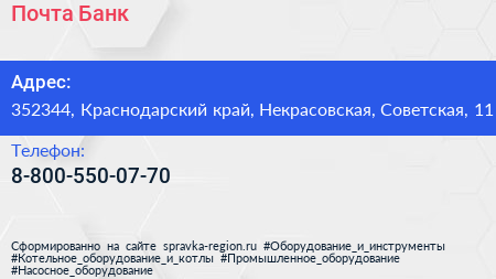 Почта Банк по адресу 352344, Краснодарский край, Некрасовская, Советская, 11 в дальнейшем Организация, размещена в следующих категориях: