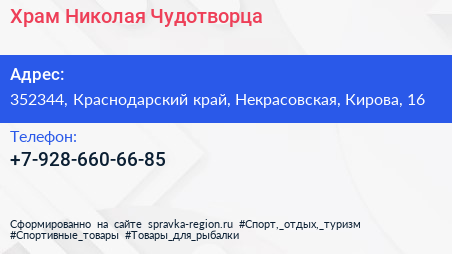 Храм Николая Чудотворца по адресу 352344, Краснодарский край, Некрасовская, Кирова, 16 в дальнейшем Организация, размещена в следующих категориях: