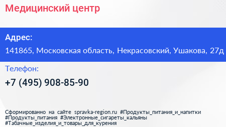 Медицинский центр по адресу 141865, Московская область, Некрасовский, Ушакова, 27д в дальнейшем Организация, размещена в следующих категориях: