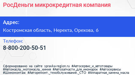 РосДеньги, микрокредитная компания по адресу Костромская область, Нерехта, Орехова, 6 в дальнейшем Организация, размещена в следующих категориях: