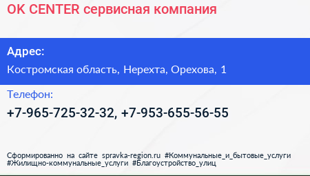 OK-CENTER, сервисная компания по адресу Костромская область, Нерехта, Орехова, 1 в дальнейшем Организация, размещена в следующих категориях: