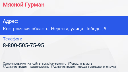 Мясной Гурман по адресу Костромская область, Нерехта, улица Победы, 9 в дальнейшем Организация, размещена в следующих категориях: