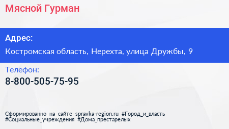 Мясной Гурман по адресу Костромская область, Нерехта, улица Дружбы, 9 в дальнейшем Организация, размещена в следующих категориях: