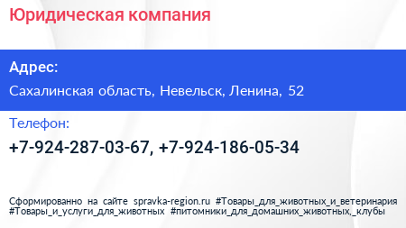 Юридическая компания по адресу Сахалинская область, Невельск, Ленина, 52 в дальнейшем Организация, размещена в следующих категориях: