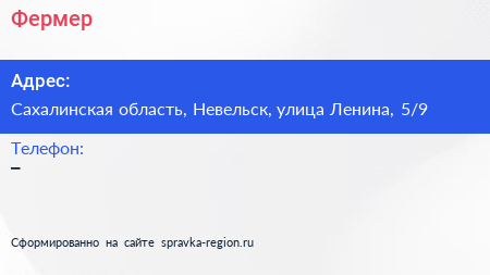 Фермер по адресу Сахалинская область, Невельск, улица Ленина, 5/9 в дальнейшем Организация, размещена в следующих категориях: