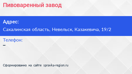 Пивоваренный завод по адресу Сахалинская область, Невельск, Казакевича, 19/2 в дальнейшем Организация, размещена в следующих категориях: