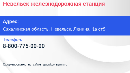 Невельск, железнодорожная станция по адресу Сахалинская область, Невельск, Ленина, 1а ст5 в дальнейшем Организация, размещена в следующих категориях: