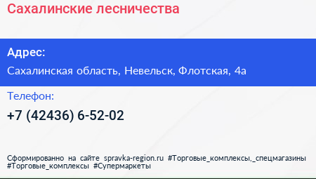 Сахалинские лесничества по адресу Сахалинская область, Невельск, Флотская, 4а в дальнейшем Организация, размещена в следующих категориях: