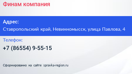 Финам, компания по адресу Ставропольский край, Невинномысск, улица Павлова, 4 в дальнейшем Организация, размещена в следующих категориях: