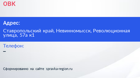 ОВК по адресу Ставропольский край, Невинномысск, Революционная улица, 57а к1 в дальнейшем Организация, размещена в следующих категориях: