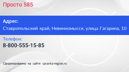 Просто 585 по адресу Ставропольский край, Невинномысск, улица Гагарина, 10 в дальнейшем Организация, размещена в следующих категориях: