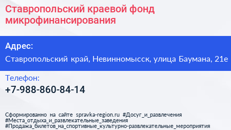 Ставропольский краевой фонд микрофинансирования по адресу Ставропольский край, Невинномысск, улица Баумана, 21е в дальнейшем Организация, размещена в следующих категориях: