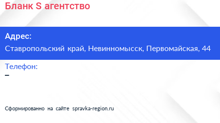 Бланк`S, агентство по адресу Ставропольский край, Невинномысск, Первомайская, 44 в дальнейшем Организация, размещена в следующих категориях: