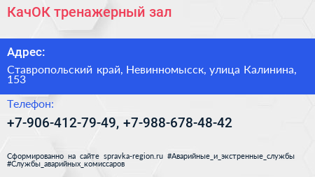КачОК, тренажерный зал по адресу Ставропольский край, Невинномысск, улица Калинина, 153 в дальнейшем Организация, размещена в следующих категориях: