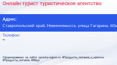 Онлайн турист, туристическое агентство по адресу Ставропольский край, Невинномысск, улица Гагарина, 60а в дальнейшем Организация, размещена в следующих категориях: