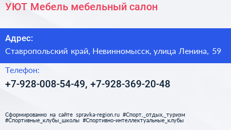 УЮТ Мебель, мебельный салон по адресу Ставропольский край, Невинномысск, улица Ленина, 59 в дальнейшем Организация, размещена в следующих категориях: