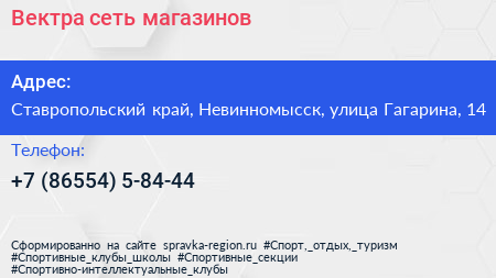 Вектра, сеть магазинов по адресу Ставропольский край, Невинномысск, улица Гагарина, 14 в дальнейшем Организация, размещена в следующих категориях:
